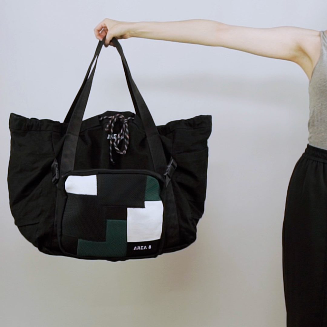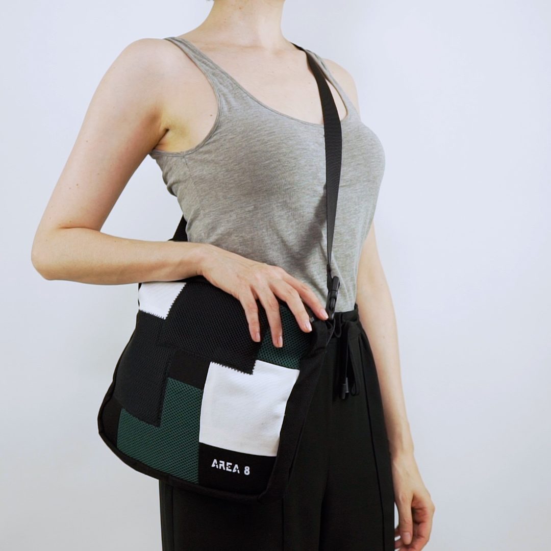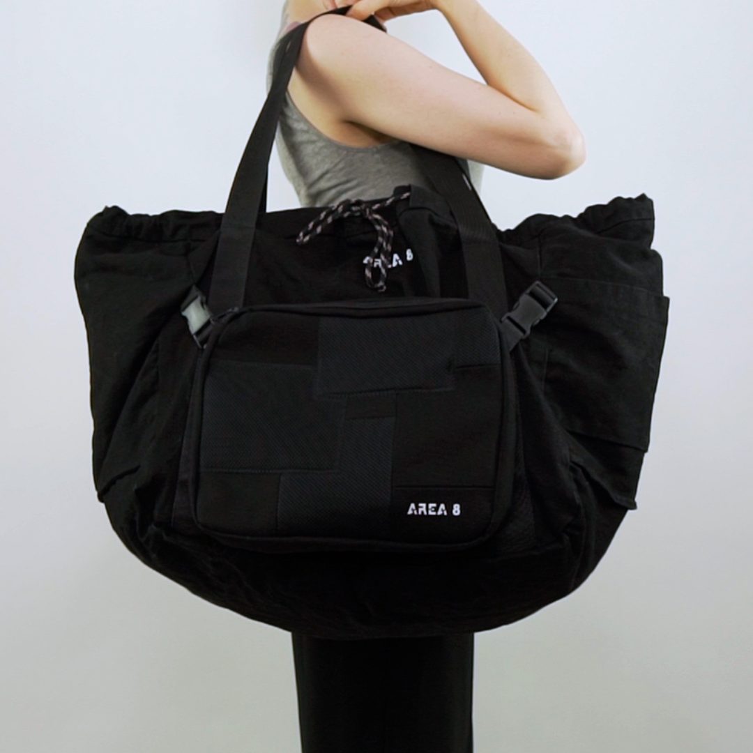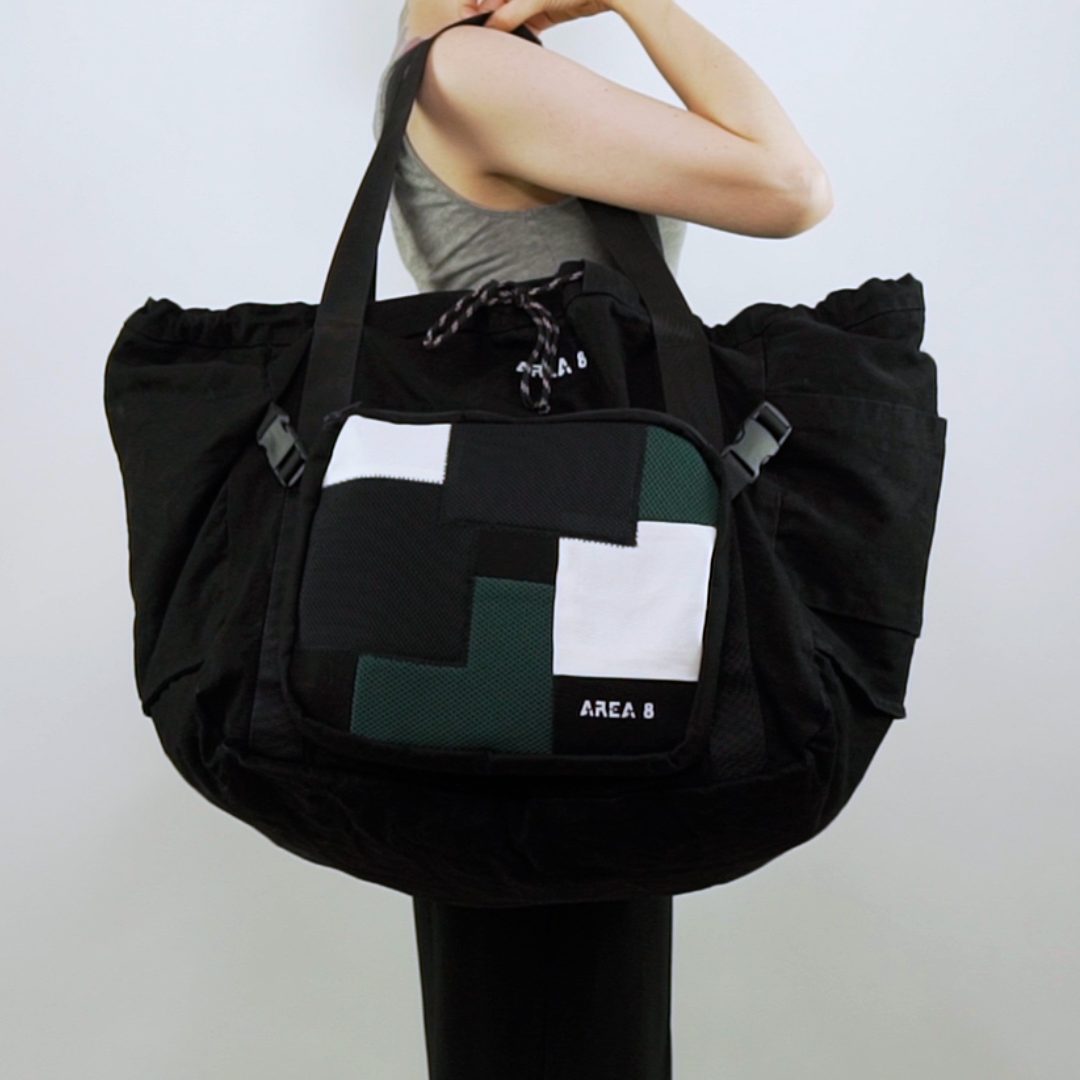 Não só surgiu a necessidade de o tornar ecológico, com produção em upcycling de deadstock, mas também colaborativo. Com design base AREA 8, o saco inclui uma pequena amostra de outros jovens designers nacionais: AHCOR, HOUSE OF WILDFLOWERS e MARIA CARLOS BAPTISTA. Produzido em quantidades limitadas, numa sarja preta 100% algodão, uma cor neutra que representa a AREA 8, o saco contém uma mini bag extra, onde as quatro marcas foram desafiadas a criar um patch que as represente. Daqui nasceram quatro designs distintos.