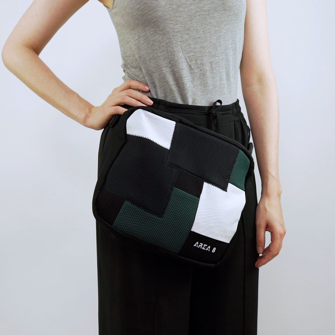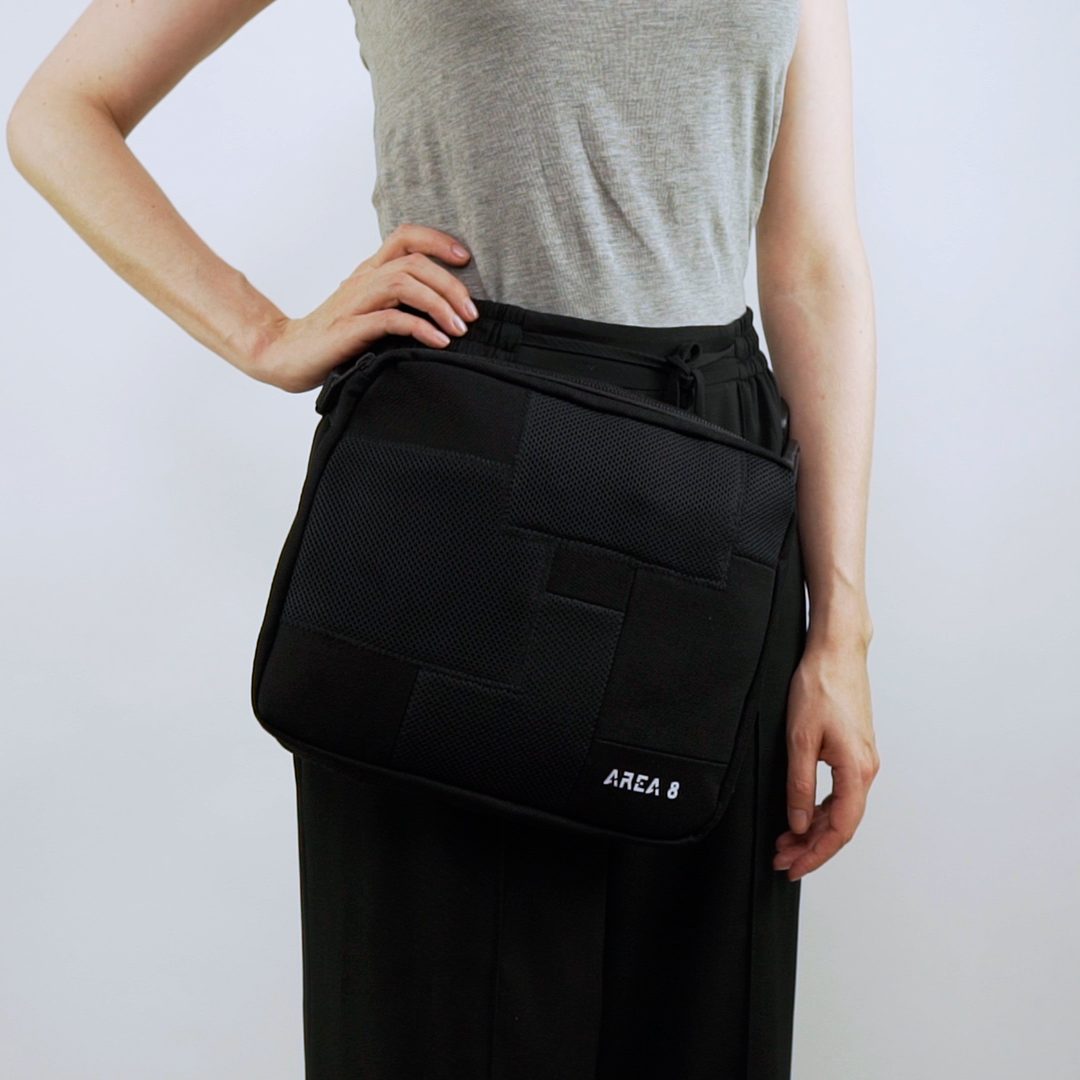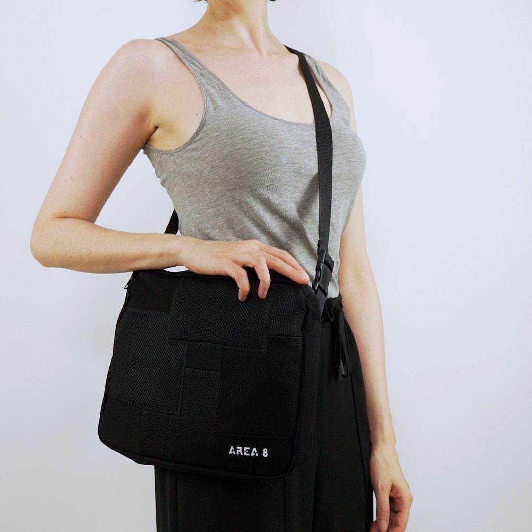 Não só surgiu a necessidade de o tornar ecológico, com produção em upcycling de deadstock, mas também colaborativo. Com design base AREA 8, o saco inclui uma pequena amostra de outros jovens designers nacionais: AHCOR, HOUSE OF WILDFLOWERS e MARIA CARLOS BAPTISTA. Produzido em quantidades limitadas, numa sarja preta 100% algodão, uma cor neutra que representa a AREA 8, o saco contém uma mini bag extra, onde as quatro marcas foram desafiadas a criar um patch que as represente. Daqui nasceram quatro designs distintos.