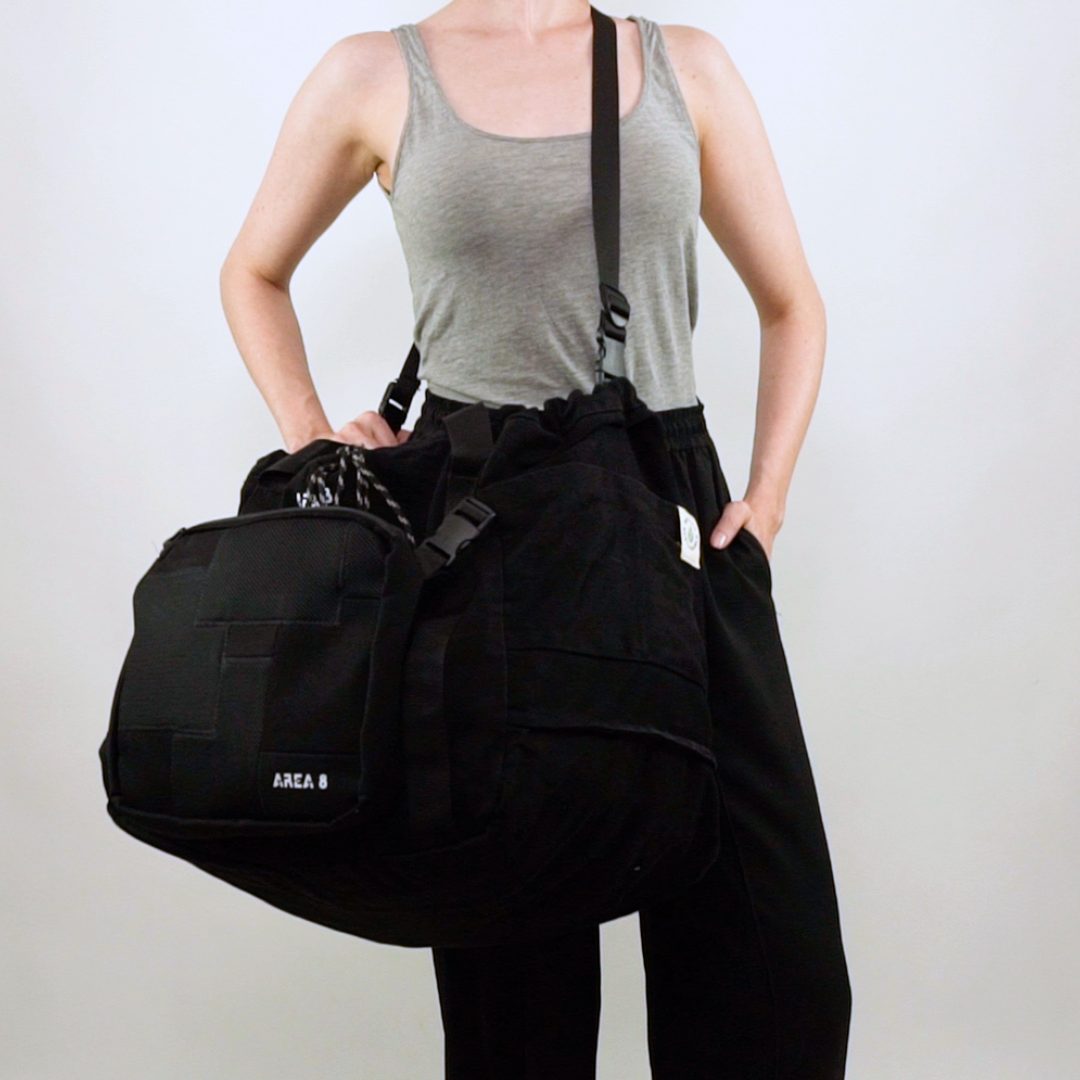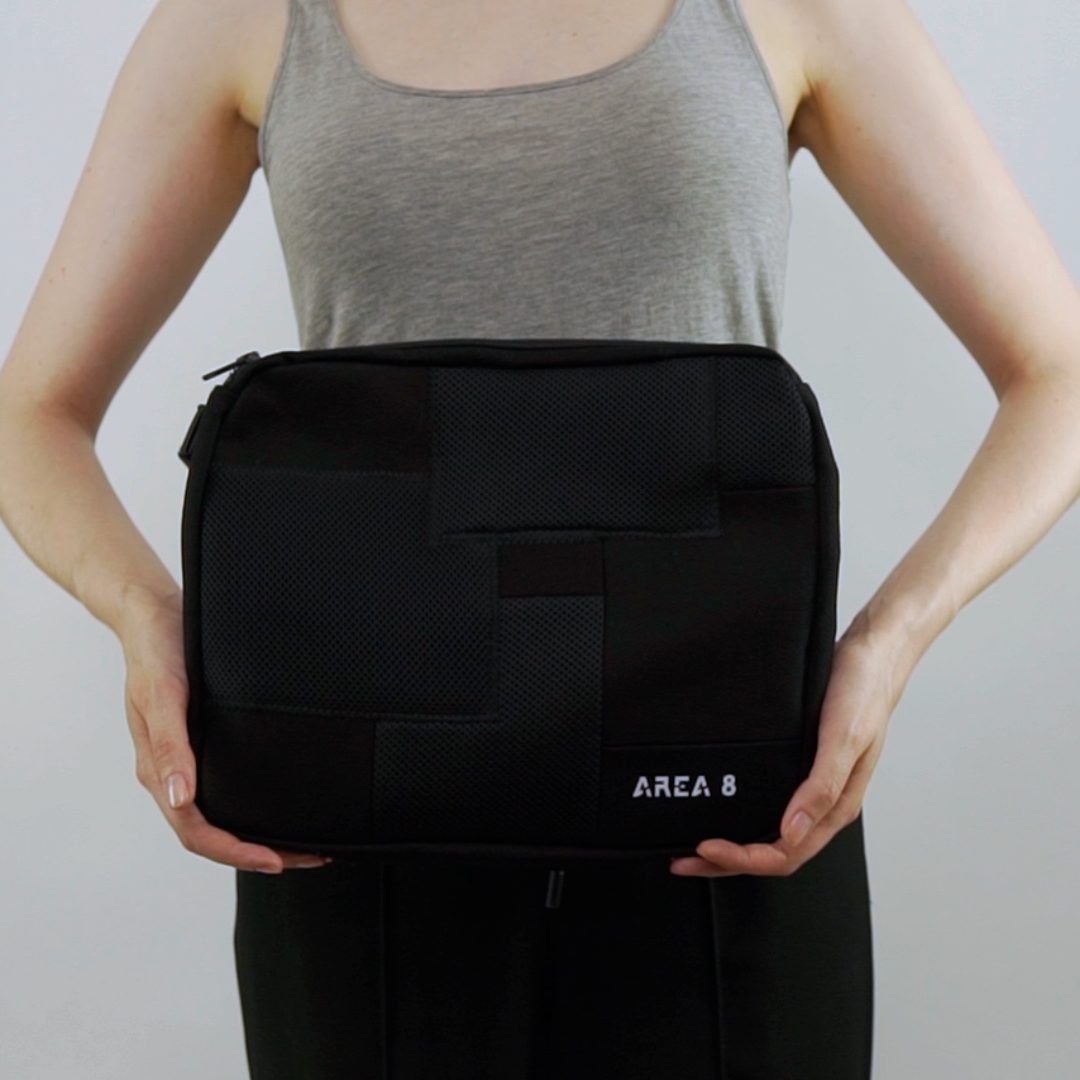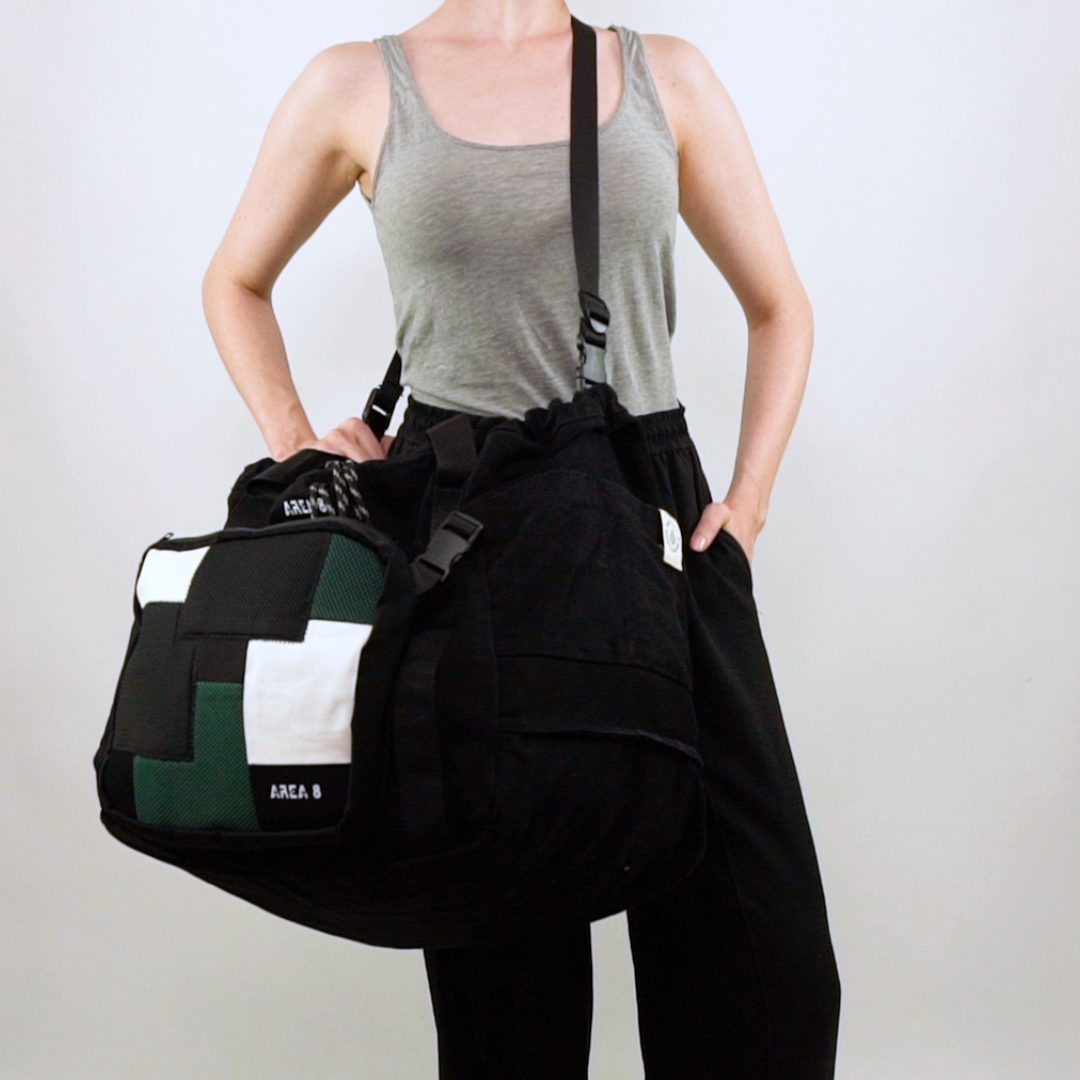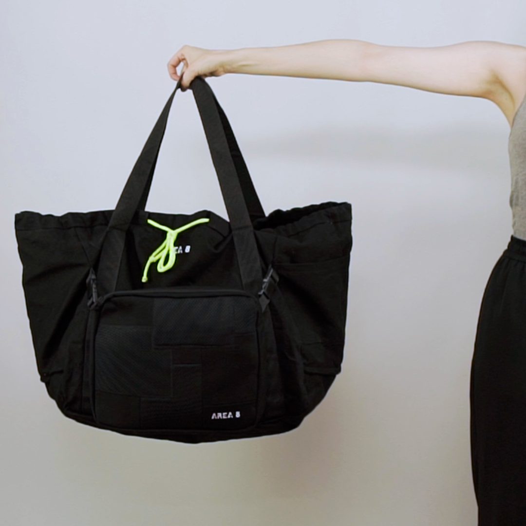 Não só surgiu a necessidade de o tornar ecológico, com produção em upcycling de deadstock, mas também colaborativo. Com design base AREA 8, o saco inclui uma pequena amostra de outros jovens designers nacionais: AHCOR, HOUSE OF WILDFLOWERS e MARIA CARLOS BAPTISTA. Produzido em quantidades limitadas, numa sarja preta 100% algodão, uma cor neutra que representa a AREA 8, o saco contém uma mini bag extra, onde as quatro marcas foram desafiadas a criar um patch que as represente. Daqui nasceram quatro designs distintos.